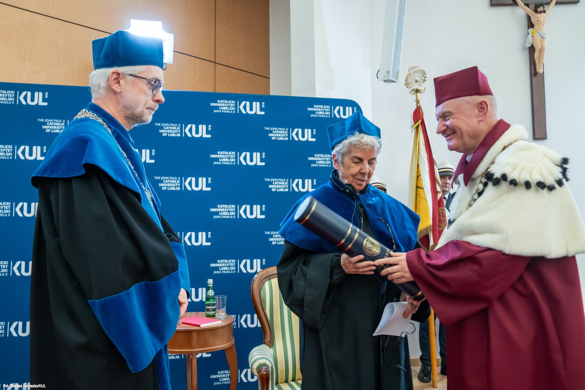 Na wstępie rektor KUL ks. prof. Mirosław Kalinowski podkreślił, że najważniejszym powodem, dla którego prof. Delsol otrzymuje to najwyższe w świecie akademickim wyróżnienie, jest „jej wierna służba Prawdzie”. Dodał, że „ludzie służący Prawdzie mają być światłem w naszej społeczności, pomagającym nam wybierać słuszną drogę i iść nią zwłaszcza wtedy, gdy staje się wąską i wymagającą podjęcia niekiedy ostatecznego ryzyka”.